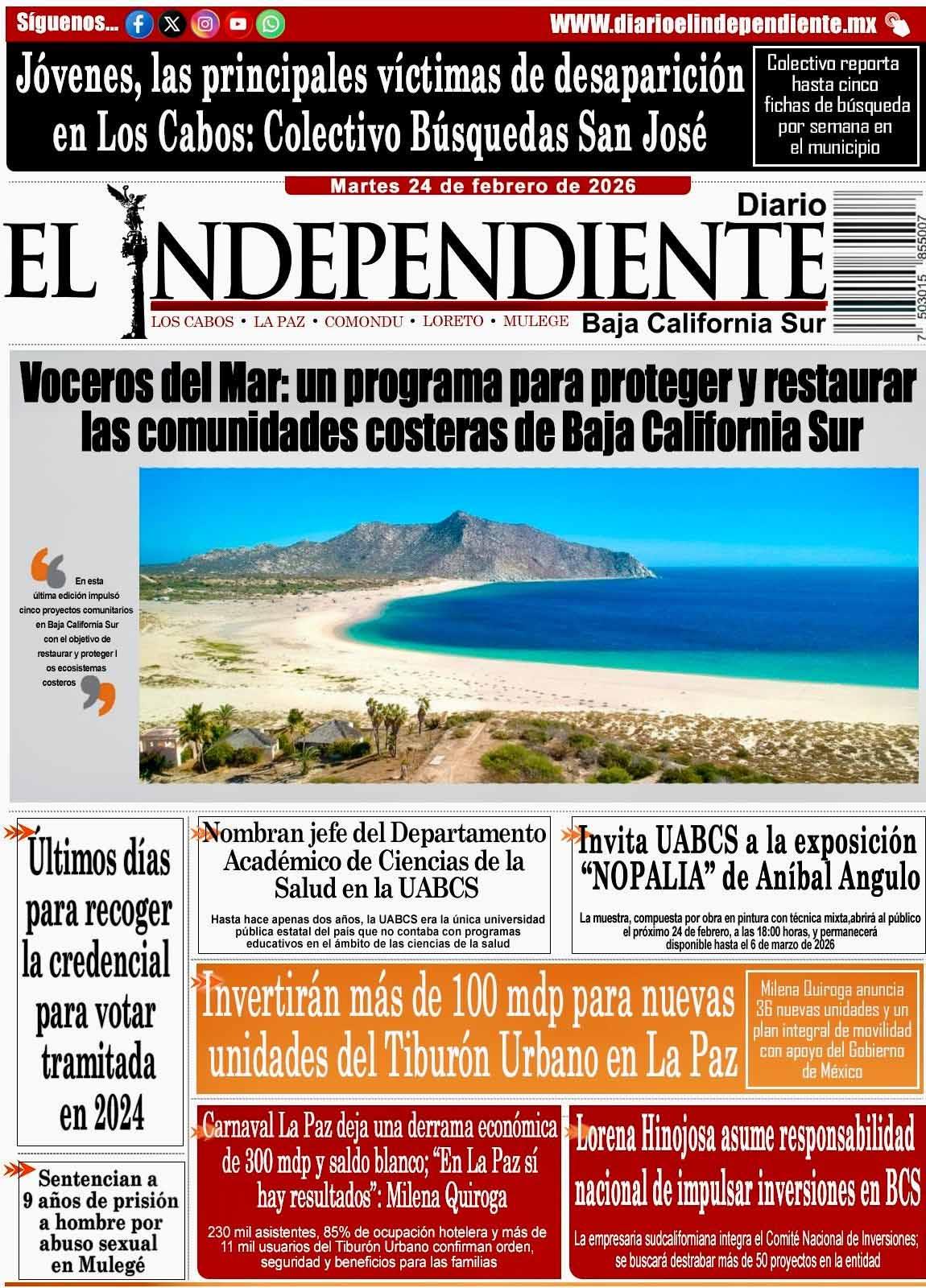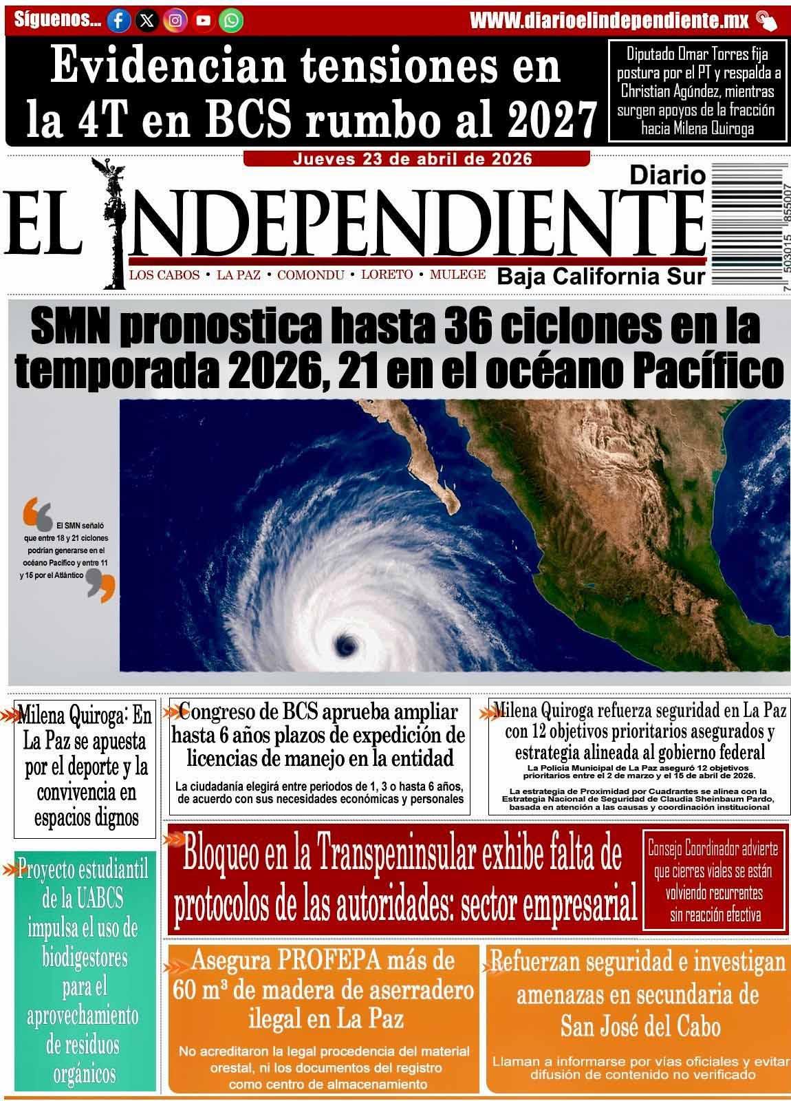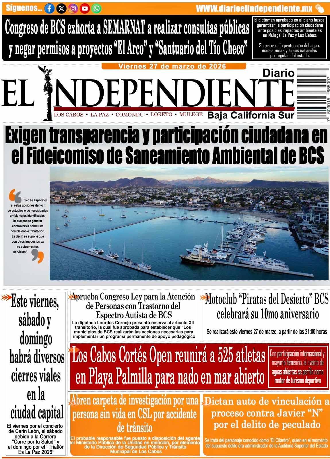 Suscríbete a la edición impresaRecibe notificaciones en tu correo electrónico y entérate antes que nadie de todo lo que ocurre en Baja California Sur.