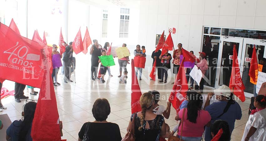 La Paz, Baja California Sur.- Alrededor de 30 personas del movimiento Antorcha Campesina se manifestaron la tarde de ayer en instalaciones del palacio municipal de La Paz, para exigir respuestas al pliego petitorio que entregó la organización al alcalde, Rubén Muñoz Álvarez, desde octubre del 2018.