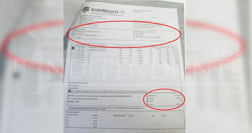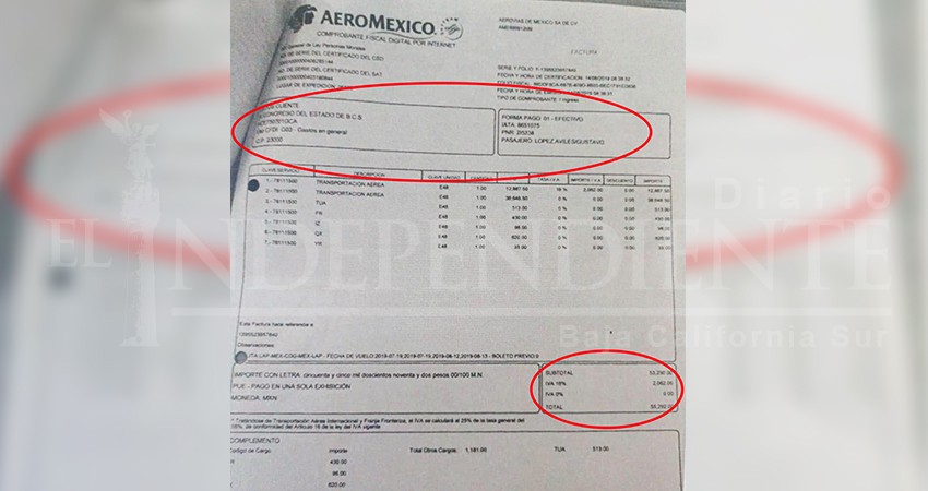 En poder de Diario El Independiente, constan documentos donde se hizo el cargo al Congreso de Baja California Sur en septiembre de 2019.
