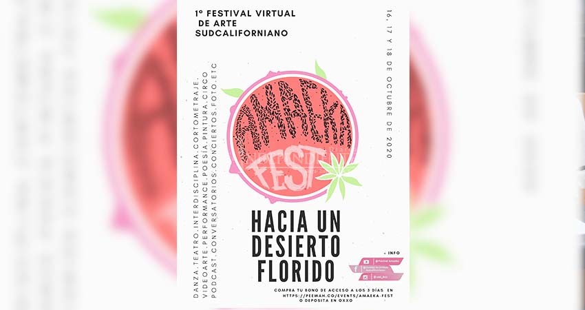 Los artistas participantes en el evento sostenido en plataforma de telepresencia, expresaron que el festival Amaeka, “hacia un desierto florido”, surge con la intención de apoyar la economía de la comunidad artística afectada por la pandemia de COVID-19.