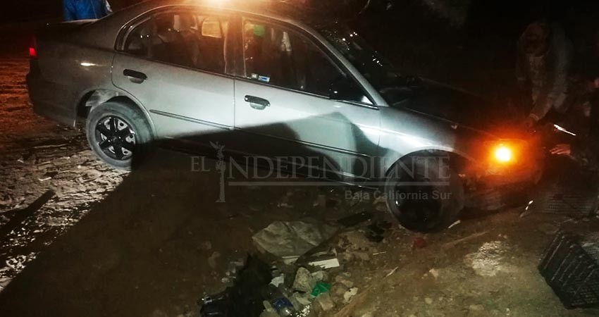 La Paz, Baja California Sur.- Con daños frontales de consideración, resultó la noche del lunes un vehículo tipo sedán, tras caer accidentalmente a una zanja en las inmediaciones del libramiento Juan de Dios Angulo y San Pedro Mártir, en la segunda sección de la colonia 8 de Octubre.