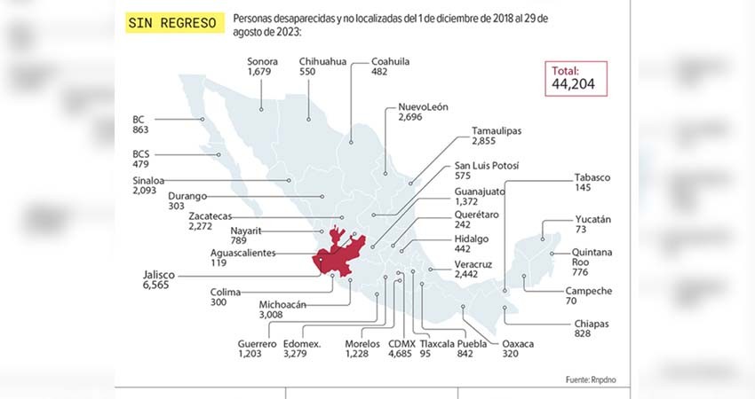 • En lo que va de esta administración, más de 27 mil personas de 15 a 39 años se encuentran en calidad de desaparecidas y no localizadas, según cifras del Rnpdno; Jalisco, CDMX y Edomex, entre las 10 entidades con más casos