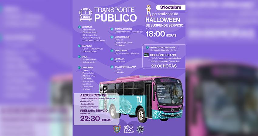 • Las unidades del Tiburón Urbano concluirán el servicio a las 20:00 horas, mientras que el Sitio California, Grupo Modelo, Sitio Coromuel y Flecha Roja no circularán entre las 18:00 y 20:00 horas.