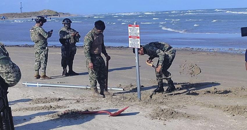 que instaló señalamientos de “Área Restringida”, en la playa Bagdad, cerca de