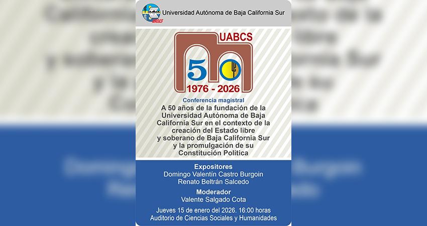 • Esta conferencia magistral busca ofrecer una reflexión histórica y contextual sobre el surgimiento de la UABCS, su vínculo con la consolidación del estado y el papel que ha desempeñado como institución en el desarrollo social, político y educativo de la entidad a lo largo de cinco décadas.