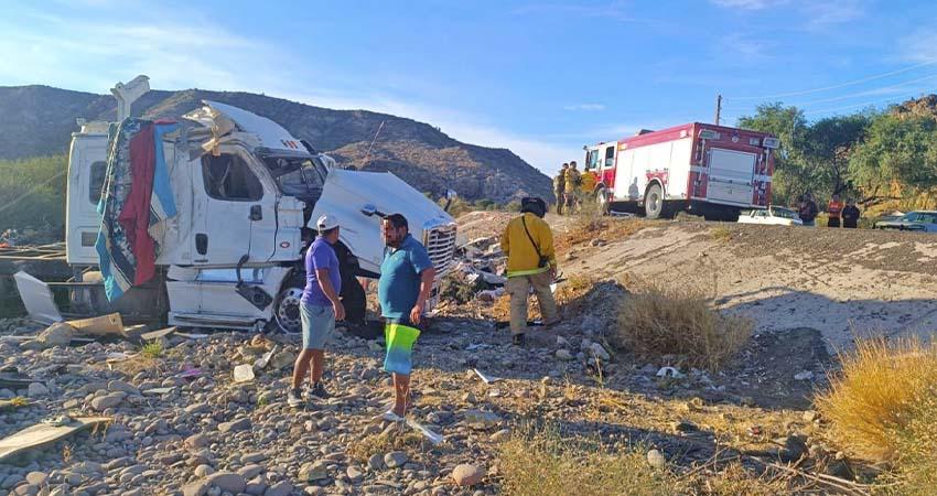 tractocamión, quienes fueron trasladados a bordo de una ambulancia de Bomberos