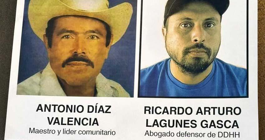 en torno al paradero de los defensores de derechos humanos Ricardo Lagunes
