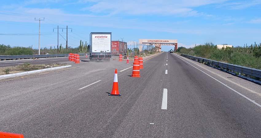 • Derivado a los trabajos de rehabilitación, de manera temporal, el sentido Todos Santos–La Paz permanece cerrado y La Paz–Todos Santos opera de manera bidireccional en ese tramo.