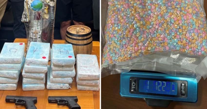 metanfetamina cristalina, dos kilogramos de cocaína y 24 armas de fuego, informó