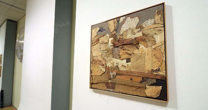 de técnicas mixtas, incorporando diferentes elementos como cortezas, arenas de