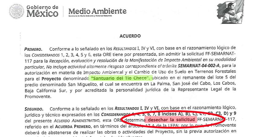 (Semarnat) resolvió desechar la solicitud de autorización en materia de impacto