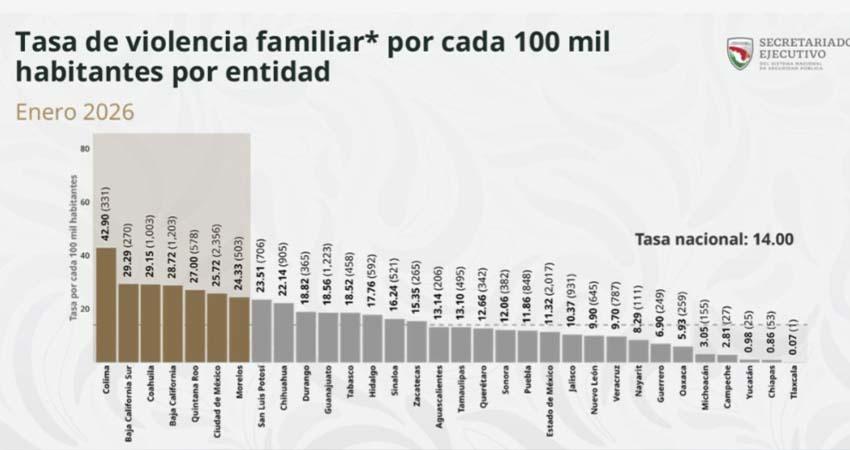 • Con 270 casos en enero y un crecimiento de más del 30% en cinco años, el estado se ubica como el segundo con mayor incidencia en el país, según el Secretariado Ejecutivo del Sistema Nacional de Seguridad Pública.