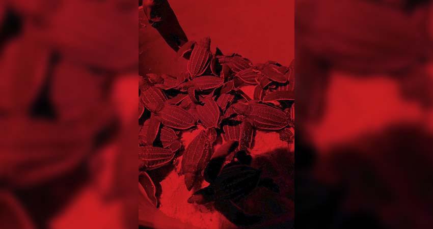 • Como parte del protocolo, se empleó luz roja durante la liberación, ya que esta tiene una longitud de onda larga que las tortugas marinas apenas perciben, evitando desorientarlas