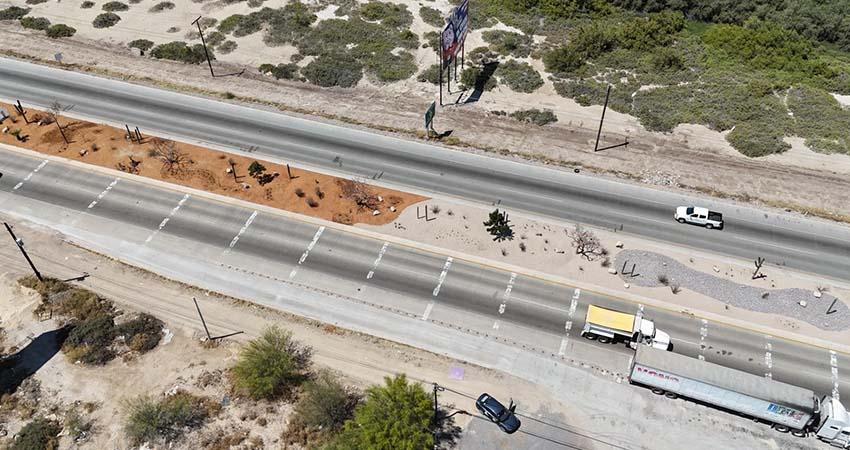 conectar el camellón de la carretera a la salida hacia el norte a la altura del